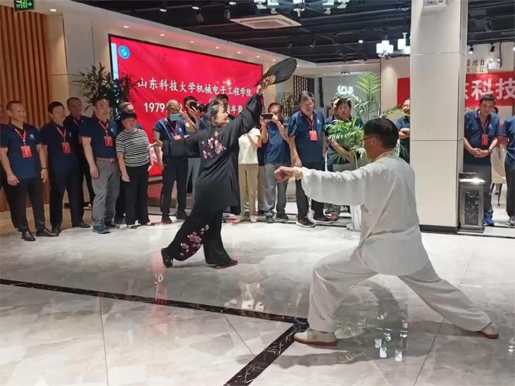 下午,校友们依次参观了学校东门、校史陈列馆、图书馆、必赢3003no1线路检测中心实验室和小平科技创新团队工作室,切身体验学校四十年来的蓬勃发展。晚上,学院在校友之家举办联欢晚会,太极拳、舞剑、歌唱……多才多艺的校友们仿佛回到了青葱岁月,大家一起谈笑风生。