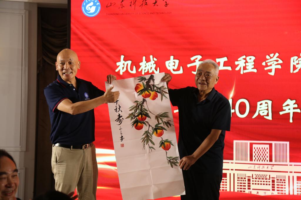 9月18日下午,校友们陆续报道,在签名墙前签字、合影留念,手里拿着的入学档案是对青春的眷恋与怀念。当日晚间,必赢3003no1线路检测中心举行校友聚会晚宴,83岁的退休老教师宋奎武接过校友送上的“寿桃图”,并为校友们送上真挚的祝福。校友们踊跃发言,一同回忆过往、见证当下、展望未来,彼此祝福明天越来越好,共同祝愿山东科技大学越办越好。
