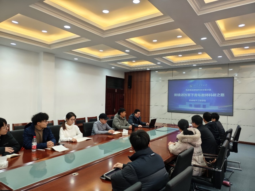 会议第二阶段,与会青年学者针对新绩效政策下如何开展科研、教学等工作开展了深入的讨论交流。于蓉蓉老师表示,在学校积极倡导做“大科研”,争取“大成果”的形势下,我们青年教师要开展更为深入的学术交流,瞄准对机械工程学科有重要支撑力度的高水平成果联合发力,特别是我们青年老师较有积累的论文发表等领域。李晨鸣老师发言表示,在新绩效或者新的评价指标体系下,我们青年老师更需要围绕学院重点发展的方向,进行项目、论文等全方位深入的合作交流,开展有组织科研。