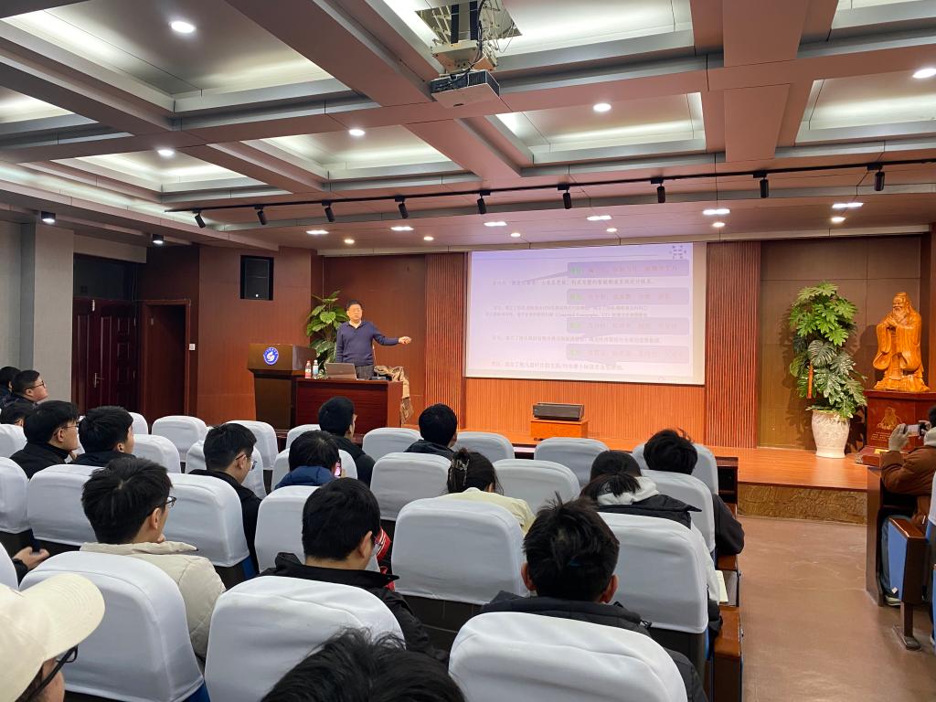 李勇教授首先结合学校、学院相关文件以及自身指导经验,向同学们具体介绍了研究生学位论文的特点、基本要求、基本格式与撰写标准。随后,依据往年学位论文的评审意见,围绕学位论文格式与结构、创新性、有限元分析过程、现代数学理念、逻辑性、定量分析、试验方法等评审专家提出的主要问题进行了详细阐述,重点介绍了从理论、模型、算法、准则等四方面凝练论文创新点。最后,就学术不端检测、学位论文盲评、答辩前论文审查、论文答辩修改定稿等环节进行详细解读,介绍了学校及学院严把论文答辩和审核的相关政策,以及博士、硕士研究生学位论文抽检工作要求,鼓励和倡导同学们端正态度,重视学位论文撰写,坚守科研诚信,恪守学术规范,投入时间和精力,精心打磨,为研究生阶段的学习交上一份满意的答卷。