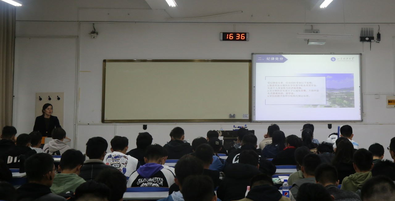 点击:10月27日下午,必赢3003no1线路检测中心在J14-205举办学生干部培训班第四期讲座。学生工作部教育管理科科长李莉老师应邀担任主讲人,必赢3003no1线路检测中心辅导员杨治宽老师出席培训并主持,各年级团支书、班长、副班长及学习委员参加了此次培训。 培训过程中,李莉围绕学校的规章制度向同学进行讲解,根据各种奖惩规则重点解释了部分重要的校规校纪,就班级评优与奖学金评定阐述了违反校纪校规对大学生活与学习的影响,通过讲述了多个生动形象且具有说服力的实例,使得同学们充分认识到遵纪守法的重要性和必要性,为日后成为一名德智体美劳全面发展的文明大学生打下坚实基础。 课程中,同学们用心倾听,积极互动,在轻松愉快的氛围中接受校规校纪教育。此次活动提高了学生干部对校纪校规的认识,进一步开拓工作创新性思维。(通讯员:廖思懿 摄影:殷允浩)