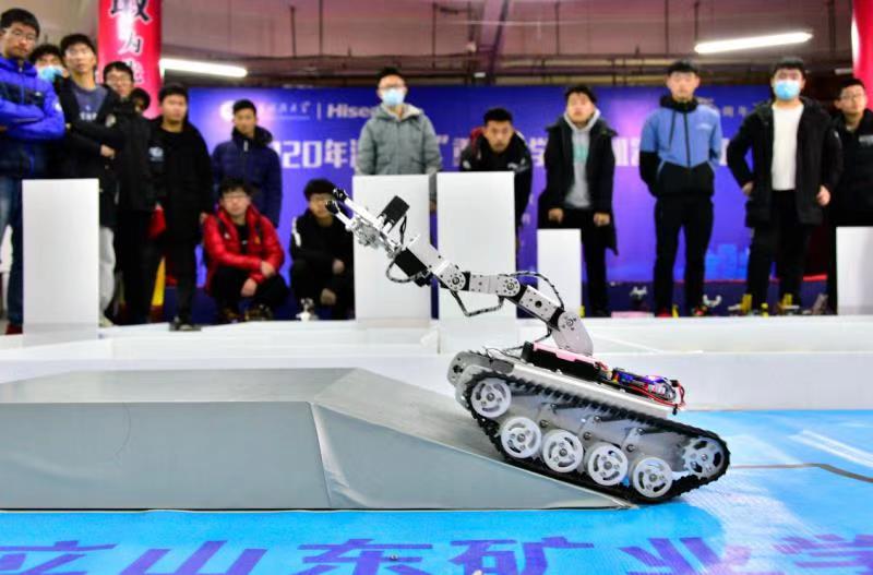 比赛采用机器人循迹越障取物与学校历史发展节点相结合的方式,参赛选手控制机器人的行进路线并越过障碍物,从“初创基业”(启动区)出发,依次经过“风雨兼程”(丛林区)、“改革发展”(桥梁区)、“开拓前进”(迷宫区),象征我校在发展过程中历经多次重大历史事件的考验与艰难曲折的洗礼,合舟共济、奋发有为,各项工作取得成就,最终到达终点“喜迎70华诞”,选手操纵机器人将“机关钥匙”搬运至终点进行堆叠,表达山科学子勤学笃行、以优异成绩回报母校的拳拳之心,最终堆叠误差小、用时少的选手胜出。