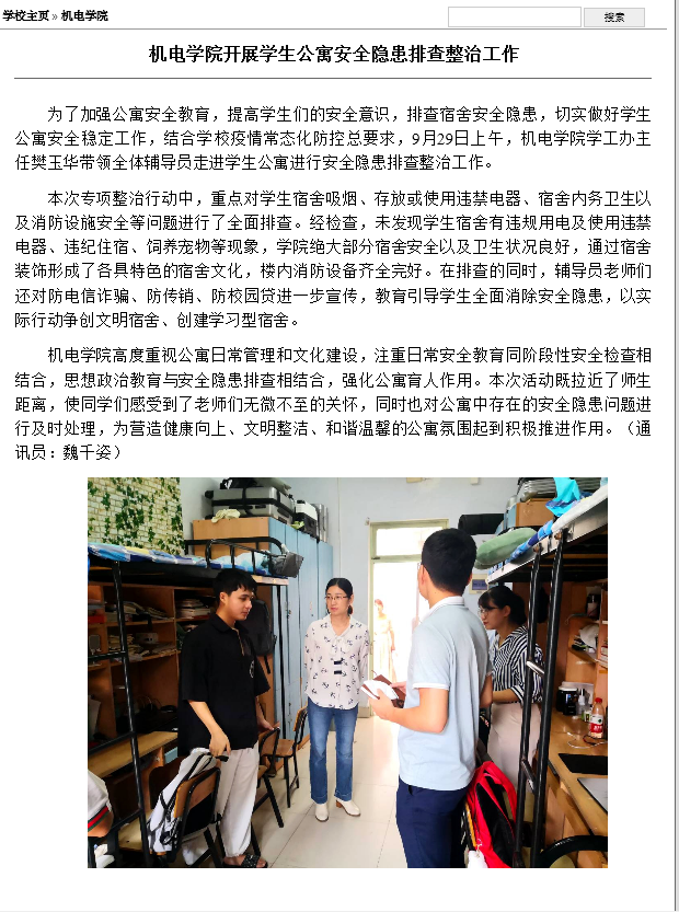 必赢3003no1线路检测中心开展学生公寓安全隐患排查整治工作