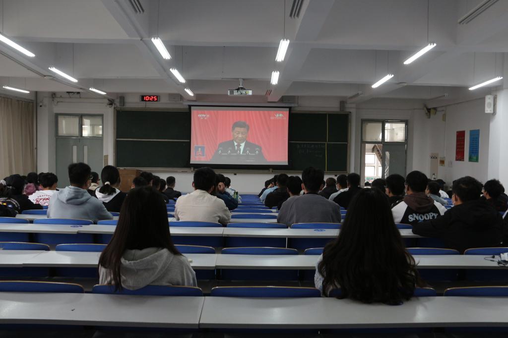 “高举中国特色社会主义伟大旗帜,全面贯彻习近平新时代中国特色社会主义思想,弘扬伟大建党精神,自信自强、守正创新,踔厉奋发、勇毅前行,为全面建设社会主义现代化国家、全面推进中华民族伟大复兴而团结奋斗……”习近平总书记铿锵有力的话语在学院楼、教学楼不断回荡,必赢3003no1线路检测中心青马工程启航班、嵙大·海信班、小平科技创新团队党支部、梦耀中华服务宣讲团、小平科技创新团队、退役复学学生以及各党团支部于报告厅、会议室、教室集中观看二十大开幕盛况,聆听习近平总书记代表十九届中央委员会向大会所作的报告。会议中同学们都聚精会神聆听习近平总书记的重要报告,时而响起激动的掌声。