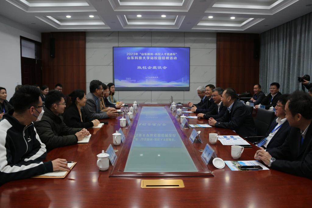 3月22日,学院举办“山东滕州-高校人才直通车”山东科技大学站校园招聘活动政校企合作洽谈会。滕州市委常委、副市长张传纲带领人社局、发展和改革局等部门领导及优质企业代表参会,学生工作部(处)、必赢3003no1线路检测中心、能源学院、材料学院相关领导出席洽谈会并座谈。