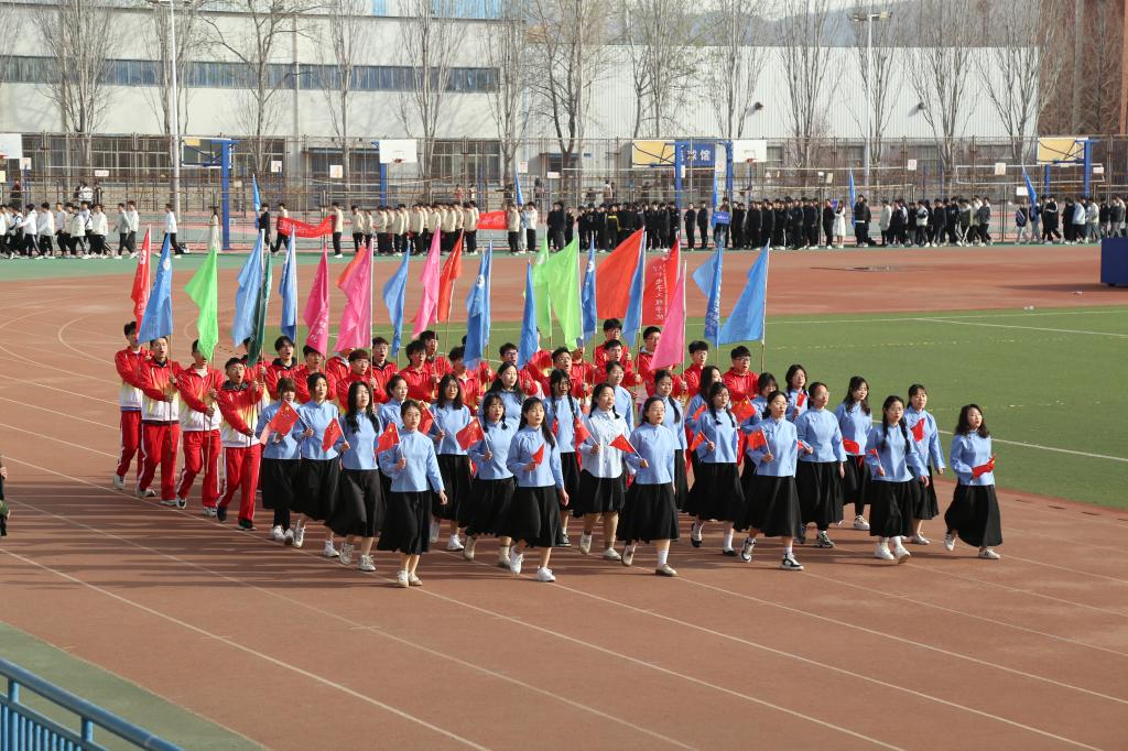 操场上,国旗班英姿飒爽,迈着整齐而又坚定的步伐护卫国旗入场,花束队、彩旗队神采奕奕,各班级同学朝气蓬勃,步伐整齐,一齐走过主席台。陈猛致开幕词,运动员代表杨浩南、裁判员代表刘一鸣发言,郑重宣誓。杨治宽宣布运动会开幕。