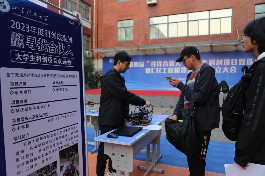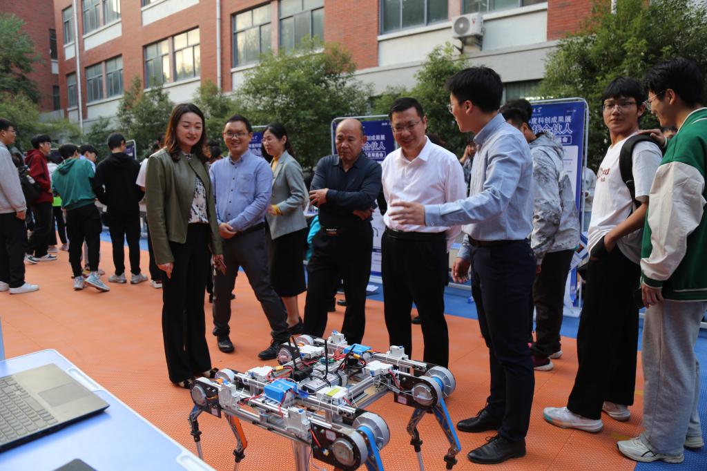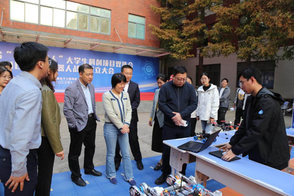 随后,科创项目双选会正式开始,参会嘉宾参观机电学院第四届“寻找合伙人”大学生科创项目作品。各个项目负责人热情地向领导老师们解说项目的设计理念和功能,展现着科创人的风貌。