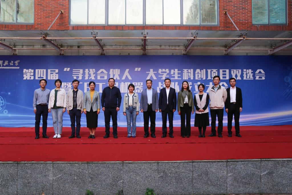 杨彬、靳凯先后宣读《必赢3003no1线路检测中心“英科医疗杯”第四届“寻找合伙人”大学生科创项目双选会通知》《必赢3003no1线路检测中心CR工程机器人战队成立公告》。刘松为CR工程机器人战队指导教师颁发聘书。