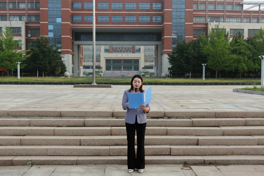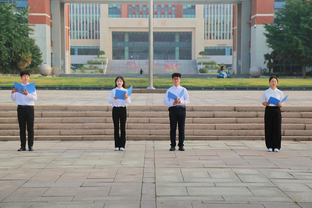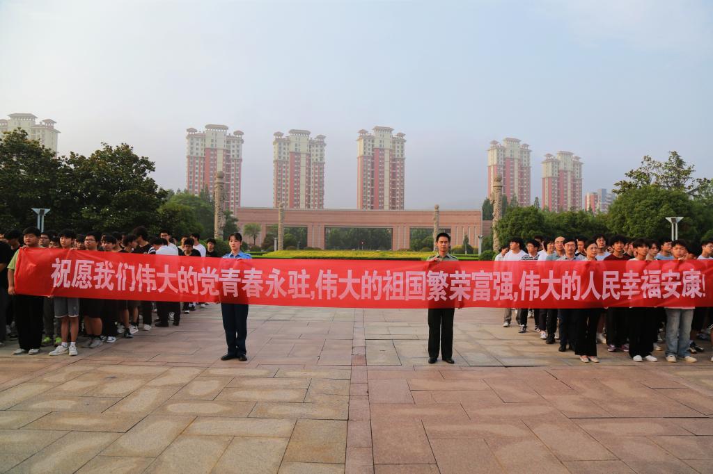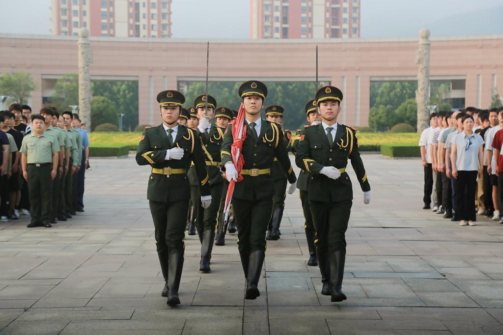 6点20分,升旗仪式正式开始,全院师生整齐列队,现场气氛庄严肃穆。在全体师生的注视下,国旗护卫队迈着整齐的步伐,庄严地将国旗护送至升旗台。伴随着《义勇军进行曲》振奋激昂的旋律响起,鲜艳的五星红旗冉冉升起、迎风飘扬,全体师生肃立致敬,共同见证这庄严而神圣的时刻。