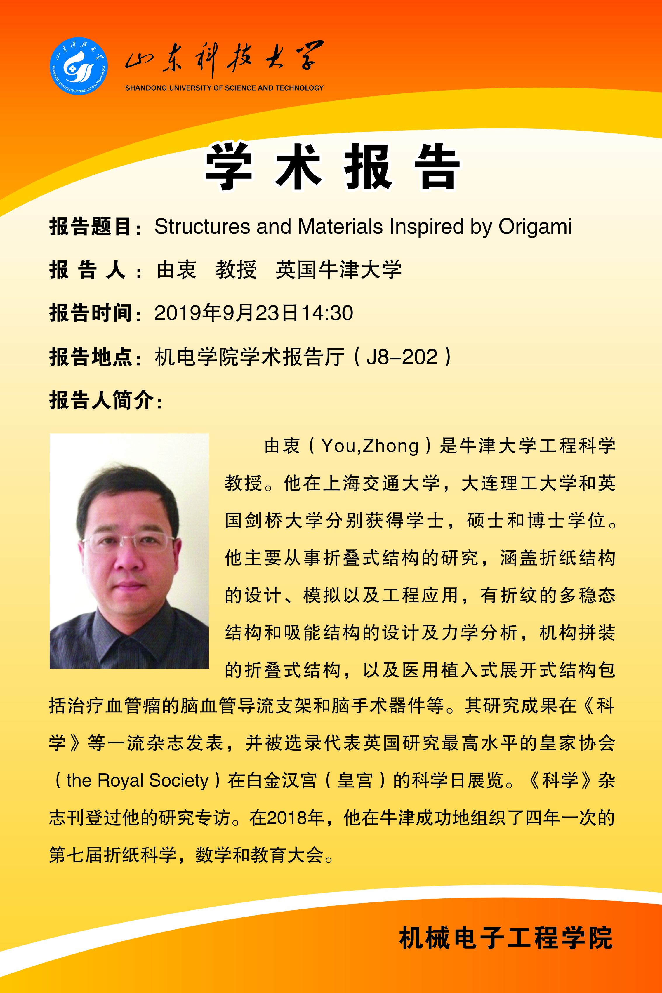 学术报告:Structures and Materials Inspirde by Origami
