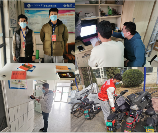 支部党员发挥先锋模范作用,在宿舍楼下值守党员先锋岗,监督同学们戴好口罩,科学防疫;积极报名担任层长,做好各楼宇学生的教育引导工作,监督同学们落实各项疫情防控要求;发扬志愿服务精神,不怕苦不怕累,在宿舍公寓内外协助同学们进行酒精消毒、清扫洗手池、捡拾垃圾;关注本宿舍同学心理健康状况,力所能及地为同学们排忧解难。